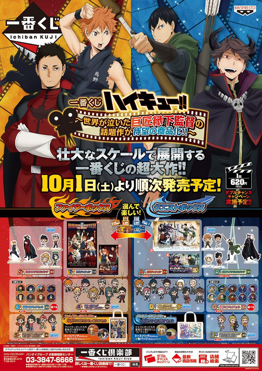 アニメ ハイキュー 一番くじハイキュー 世界が泣いた巨匠縁下監督の話題作が待望の商品化 いよいよ明日10 1 土 より順次発売です ファイターボックスとクエストボックス 選べる2つの世界観を一番くじでお楽しみください T Co
